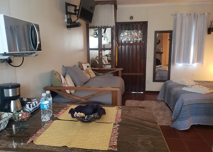Vous pourrez rejoindre le centre de Monte Verde en moins de 10 minutes à pied, ainsi que l'Orquidário MV se trouve à 8 minutes de marche de la villa Chales Fonte Da Serra Monte Verde - Mg. Si vous souhaitez visiter les environs, rendez-vous au Centre commercial Inverness Mall, à côté de cette propriété de Monte Verde. L'aéroport de São José dos Campos le plus proche est à 125 km de cet hébergement.